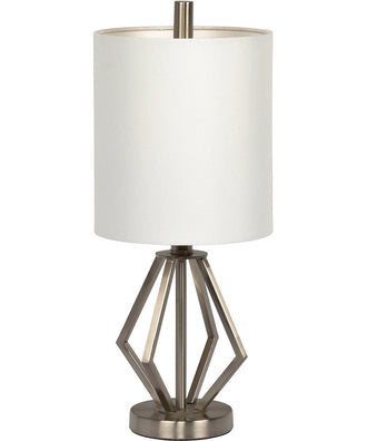 Enhance your living space with the sophisticated charm of the 1-Light Table Lamp in Brushed Polished Nickel. This lamp features a sleek, modern design that effortlessly blends with various décor styles. The brushed polished nickel finish adds a touch of elegance and refinement, making it a perfect addition to any room. The geometric metal base is not only sturdy but also visually appealing, creating a striking focal point in your home.