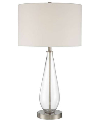 The 1-Light Table Lamp in Brushed Polished Nickel is a stunning addition to any room, offering a blend of modern sophistication and timeless elegance. The lamp features a sleek, teardrop-shaped base made from high-quality glass, complemented by a brushed polished nickel finish that adds a touch of luxury. The white fabric shade provides a soft, diffused light, creating a warm and inviting atmosphere in any space.