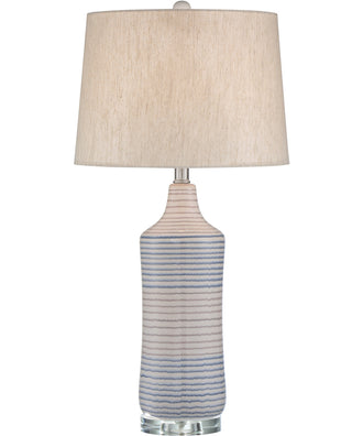 The Fedella 1-Light Table Lamp is a stunning addition to any home or office space. This lamp features a beautifully crafted ceramic body with a unique striped finish that exudes sophistication and charm. The soft, neutral tones of the stripes blend seamlessly with various decor styles, making it a versatile piece for any room. The linen fabric shade adds a touch of elegance, diffusing light softly to create a warm and inviting ambiance.