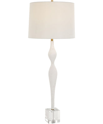The Helena Slender White Table Lamp is a true embodiment of elegance and sophistication. Featuring a slender chalk white ceramic base with feminine curvature, this lamp brings a touch of grace to any room. The base has a plaster-like texture that adds depth and character, making it a standout piece in your home decor. Complementing the ceramic base is a thick square crystal foot that exudes luxury and refinement. The antique brass-plated accents further enhance its sophisticated appeal, creating a harmonious blend of modern and classic design elements.