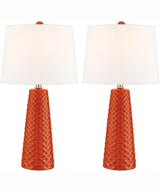 Introducing the Muriel Table Lamp by Lite Source, a perfect blend of modern design and vibrant color that will breathe new life into your home or office. This set of two table lamps is designed to make a bold statement with its striking orange ceramichrome finish and sophisticated white linen shades.
