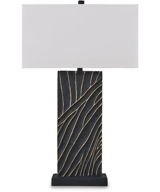 Elevate your home decor with the Bartlen Poly Table Lamp in Black/Gold. This striking table lamp features an impressive black base adorned with textured details and enhanced by eye-catching gold accents. The combination of black and gold creates a sophisticated flair that seamlessly blends urbane elegance with casual charm, making it a versatile addition to any room.