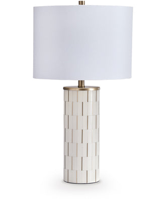 The Faridworth Poly Table Lamp in White/Gold is a stunning addition to any home or office space. Its sleek, cylindrical shape is both modern and timeless, making it a versatile piece that complements various interior design styles. The lamp features a white finished resin mosaic base that exudes sophistication, paired with brass metal accents for a touch of luxury. The drum hardback shade in crisp white adds a clean, contemporary look, ensuring it blends seamlessly with your existing decor.
