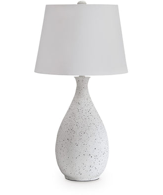 This table lamp boasts a refined white finish with subtle black speckles, giving it a unique and stylish look. The neutral tones ensure it seamlessly blends with any color scheme, making it a versatile choice for different rooms and settings. The white shade softens the light, creating a warm and inviting ambiance, perfect for reading, relaxing, or working.