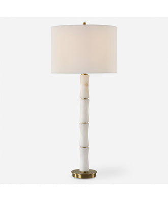 The Unify Alabaster Table Lamp is a stunning piece of art, meticulously crafted from polished alabaster into the graceful form of a bamboo shoot. This elegant design exudes sophistication and tranquility, making it a perfect addition to any room. The lamp features plated brass accents that seamlessly blend with the organic charm of the alabaster, adding a touch of luxurious refinement. The round hardback drum shade, made from crisp white linen fabric, complements the overall aesthetic, creating a timeless piece that enhances any decor.