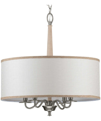 Progress lighting Durrell 4-Light Sailcloth Linen Fabric Shade Coastal Chandelier Light Brushed Nickel