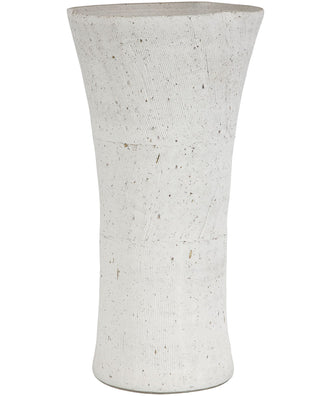 The beauty of the floreana ceramic vase is in its etched surface. smooth on the inside and pleasingly textured on the surface. the white surface is made more interesting with the scratched finishing technique to add some texture to your favorite blooms. style with dried foliage and florals or as a decorative sculptural vessel.