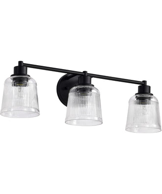 Rustic charm meets contemporary style in the Grayson 60-8603 three light vanity fixture, designed to bring industrial farmhouse elegance to today's interiors. Ideal for creating inviting spaces with character, the clean lines and textured details capture the essence of enduring design. With its bold matte black finish and clear ribbed glass, it delivers a perfect blend of warmth and modern sophistication. Grayson offers that perfect touch of Industrial Farmhouse for modern living.
