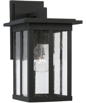 Enhance the charm and safety of your outdoor spaces with the Barrett 1-Light Outdoor Wall-Lantern in a sleek black finish. This elegant fixture from the Barrett Collection by Capital Lighting features clean lines and framed edges, delivering a modern yet timeless aesthetic that complements any exterior decor. The lantern's design is both sophisticated and functional, making it an ideal addition to your porch, patio, or garden.