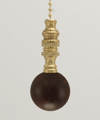 Ceramic Mahogany Ceiling Fan Pull, 2"h with 12" Polished Brass Chain