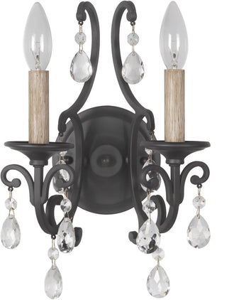 The 9"W Bentley 2-Light Wall Sconce in Matte Black is a stunning piece that exudes elegance and sophistication. With its intricate scrollwork and decorative flourishes, this wall sconce captures the essence of hand-crafted wrought iron. The matte black finish adds a touch of modernity while maintaining a timeless appeal. The design is further enhanced by crystal accents that dangle gracefully, reflecting light and adding a touch of sparkle to any room.