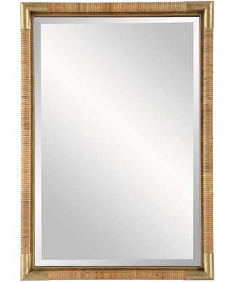 • Features: The kampar mirror is made with an iron frame finished in a heavily antiqued gold featuring a hand wrapped natural rattan. mirror has a generous 1 1/4" bevel. may be hung horizontal or vertical.