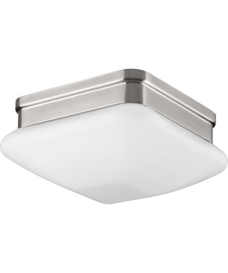 The Appeal 1-Light 7-1/2" Flush Mount in Brushed Nickel is the perfect addition to any modern or transitional home decor. This light fixture boasts a sleek, contemporary design that effortlessly blends with various interior styles. The square opal glass diffuser adds a touch of sophistication, creating a soft, inviting glow that enhances the ambiance of any room.
