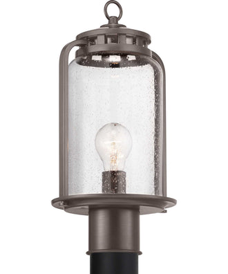 Finely crafted metal accents create a light-house inspired design with an antique bronze frame. The frame holds a clear seeded glass shade that offers extra visual character. Provide a casual, rustic feel with a vintage flair to your home's interior or exterior spaces with this post lantern. Ideal for any outdoor space in need of illumination. Perfect for transitional, rustic, farmhouse, or vintage electric settings. Measures 7-3/4-inch width by 16-inch height. Post mounted, fits standard 3" post (sold separately). Uses one medium base bulb that is sold separately (100w max - LED or incandescent). Able to be fully dimmable with dimmable bulbs. Includes installation instructions and mounting hardware. Progress Lighting products are designed for exceptional quality, reliability, and functionality.