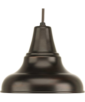 The one-light medium size cord hung pendant/outdoor hanging lantern from the District Collection features metal shade that offers an industrial-inspired design. The versatile vintage form can be used in indoor and outdoor applications. Antique Bronze finish.