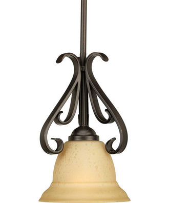 Progress lighting Torino 1-Light Tea-Stained Glass Transitional Mini-Pendant Light Forged Bronze