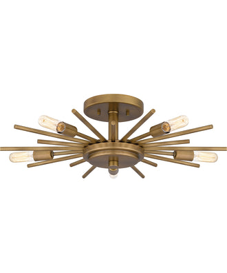 The Mesquite semi-flush mount radiates modern style with its geometric sputnik design and choice of matte black or weathered brass finish. Hang this versatile piece in a variety of spaces including a bedroom, hallway, home office , or living room. Pair with vintage filament bulbs for an added element of flair.