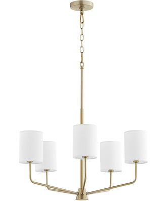 Picture this 5-light Chandelier in your home or office. Refresh your room with this Aged Brass -finished Chandelier by Quorum.