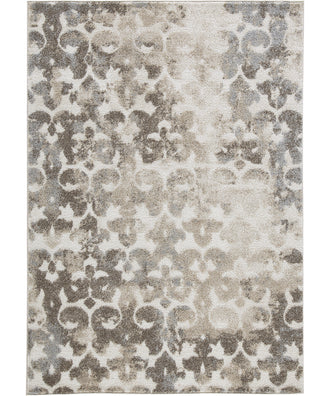 • Machine woven high-low fleur de lis design in shades of brown, cream, and gray