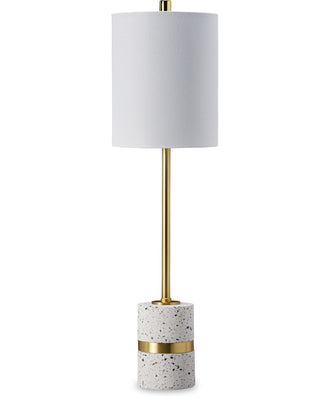 • Antique brass finished metal and off-white terrazzo table lamp