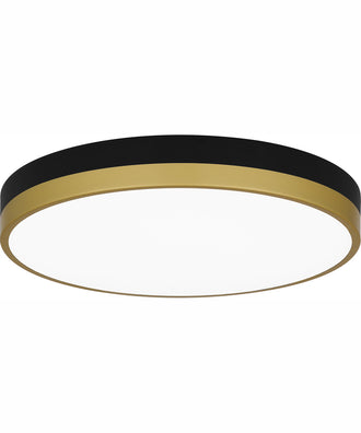 The Weldin flush mount is as smart as it is sleek. This design features an integrated light source for a dependable glow in entryways, hallways, or home offices. Two color palettes — either matte black and gold, or matte black and white — complement a multitude of interior design styles.