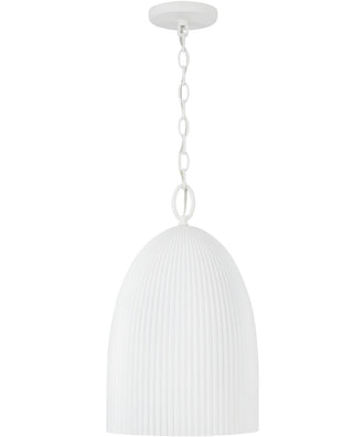 The Mallory 1-Light Pendant in Ceramic White is a stunning blend of sophisticated style and artisan craftsmanship. This elegant pendant light features a handcrafted fluted ceramic shade that beautifully complements its curved silhouette, creating a timeless design that adds a touch of refinement to any space.
