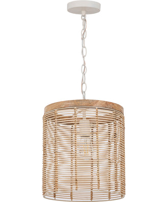 This pendant light boasts a cylindrical shape that enhances its modern yet rustic appeal. The natural rattan shade is meticulously hand-woven, showcasing the craftsmanship and attention to detail that goes into each piece. The weathered wood accents complement the rattan, adding a warm, organic element to the design. The ecru finish ties the look together, offering a neutral palette that can seamlessly blend with different interior styles, from coastal and bohemian to farmhouse and contemporary.