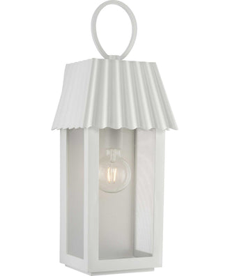 The Jeffrey Alan Marks Point Dume Hook Pond Outdoor Wall Lantern in Shelter White is a sophisticated addition to any outdoor living space. This lantern exudes elegance with its clean, modern lines and a steeply pitched, barn-inspired roof crowned with a distinctive loop finial. The crisp shelter white finish enhances its contemporary appeal, making it a perfect fit for various architectural styles, from traditional to coastal and new traditional themes.