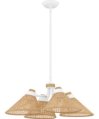 The Quoizel Pendant Large 4-light Pendant in Matte White is a stunning addition to any home, offering a blend of elegance and functionality. This pendant light features a transitional design that effortlessly complements various interior styles. The matte white finish adds a touch of sophistication, while the rattan caning shades bring a coastal charm to your space. The combination of these elements creates a visually appealing fixture that enhances the ambiance of any room.