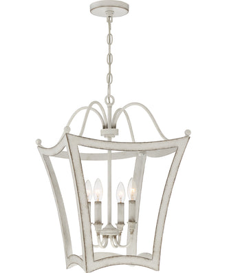 Introducing the Summerford 4-light Pendant in Antique White, a stunning lighting fixture that brings a touch of elegance and charm to any home. This exquisite pendant light is part of the Summerford Collection by Quoizel, renowned for its blend of classic design and modern functionality.