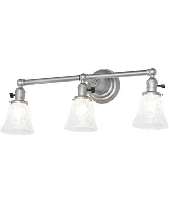 Reminiscent of lighting fixtures from the early 1900s. This timeless vanity light is a staple amongst early electric reproduction luminaires. The Revival wall fixture features three Clear Etched Glass shades with an elegant Wreath and Garland motif. It is an authentic; historic look to complement any bath as a vanity light or to illuminate a hallway as a wall sconce. Authentic decorative accents and hardware details in a Light Sandstone finish make this piece a timeless treasure. The Revival Wreath & Garland 3 Light Vanity Light is included in our American-designed; handcrafted Revival Lighting Collection. UL and cUL listed for dry and damp locations.