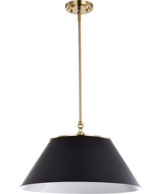 The Dover 3-Light Pendant in Black and Vintage Brass is a striking addition to any home or office. Its sleek, modern design features a sophisticated black finish complemented by vintage brass accents, creating a timeless aesthetic that blends seamlessly with various decor styles. The pendant's wide, conical shape provides ample light coverage, making it both a functional and stylish lighting solution.