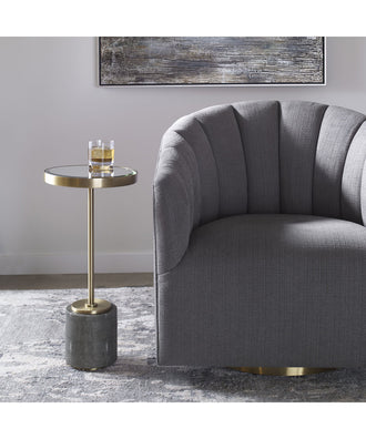 Stylish And Sophisticated, This Round Accent Table Features A Gray Faux Shagreen Base Paired With An Iron Support In Rich Brushed Brass And A Beveled Mirror Top.Uttermost's Tables Combine Premium Quality Materials With Unique High-style Design.With The Advanced Product Engineering And Packaging Reinforcement, Uttermost Maintains Some Of The Lowest Damage Rates In The Industry. Each Product Is Designed, Manufactured And Packaged With Shipping In Mind.