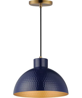 The Rockport 12-inch 1-Light Pendant in Green/Natural Aged Brass is a stunning addition to any room with its elegant design and stylish appeal. The pendant features a hammered metal dome shade, finished in a glossy enamel paint that exudes a nautical charm. The shade is available in a variety of colors including Sage Green with a glossy white interior or Glossy Black with an Antique Copper interior, allowing you to choose the perfect match for your decor. The black rayon fabric cord adds a designer touch to the overall construction, making it a versatile piece that complements both modern and traditional settings.