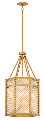 The Sura 4-Light Large Pendant in Distressed Brass is a stunning reimagining of vintage designs from the 1940s and 1950s. This pendant light features a transitional, hexagonal frame that exudes a glamorous yet understated appeal. The distressed brass finish adds a touch of sophistication and timeless elegance, making it a versatile addition to any décor.
