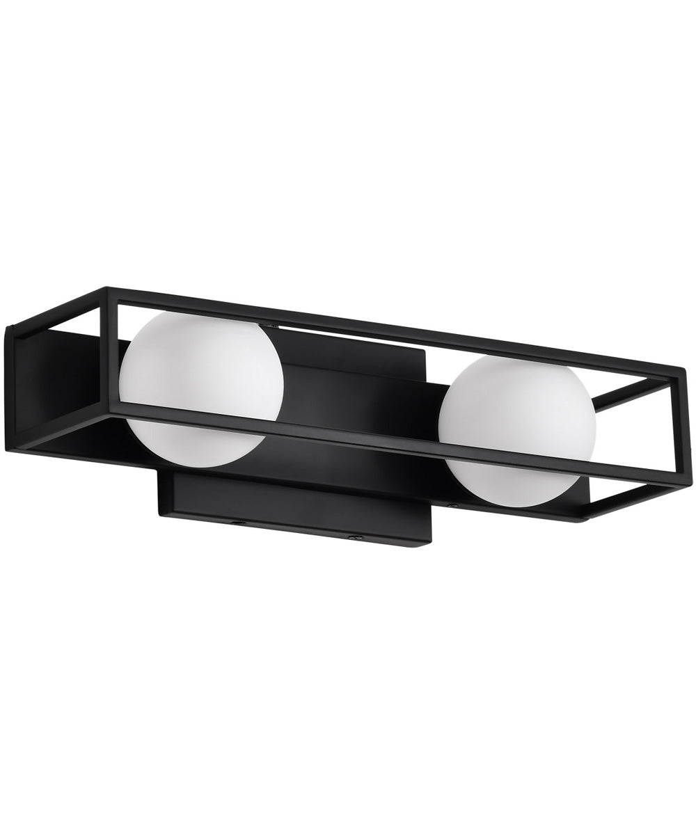 Elevate your bathroom space with the Jenkins 62-2242 LED two-globe vanity light, a stunning blend of transitional and modern design. The clean lines and minimalist silhouette exude a contemporary charm, while the frosted glass globes add a touch of softness and refinement. Available in a bold matte black, the box-like structure of the frame perfectly highlights the frosted glass globes, and LED technology ensures longevity and energy savings wrapped in clean lines and a minimalist silhouette. Redefine your bathroom experience with Jenkins, a testament to exceptional craftsmanship and enduring design.