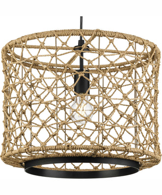 Chandra is handwoven by artisans into a casual, artful lantern form. This beautiful luminaire's organic style complements global, coastal and transitional settings. Knotted string in an open airy pattern filters light beautifully to provide relaxed warmth and texture to kitchens, breakfast nooks and bedrooms. This fixture is part of the Progress Lighting Design Series, a lighting collection offering fashionable styles and affordable luxury lighting for the home.