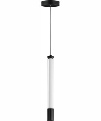 The Cortex 14 inch LED Pendant in Black is a striking piece that effortlessly combines modern design with functional lighting. Its sleek, cylindrical shape features a central diffuser made of opal white acrylic, encased within a cavity of thin ribbed glass of various lengths. This design not only adds a touch of sophistication but also ensures even light distribution, creating a warm and inviting ambiance in any room.
