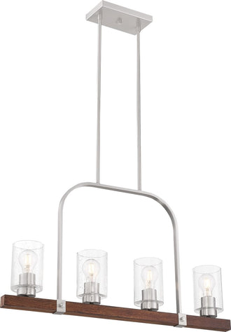 Nuvo Lighting presents the Arabel - 4 Light - Island Pendant Fixture - Brushed Nickel and Nutmeg Wood Finish with Clear Seeded Glass , to breathe new life into your home or office.