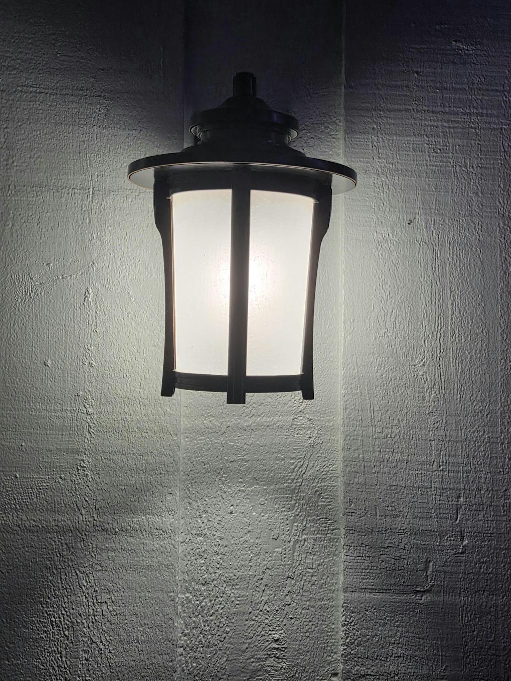 This fixture was easy to install and looks really nice at our front door. it provides good light and the glass panels are nicely fogged so you don't see the bulb.