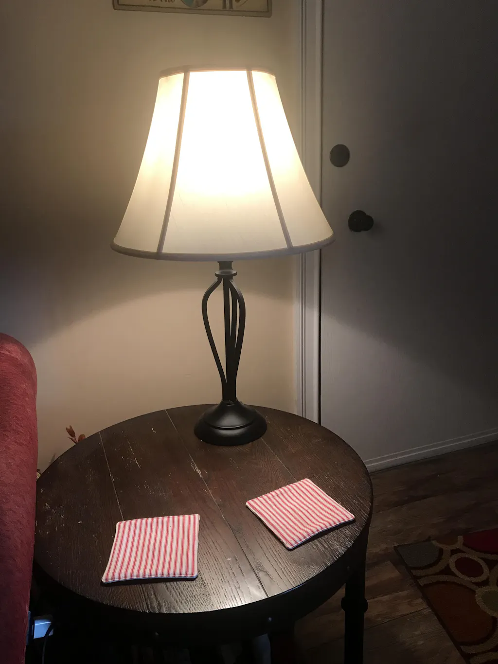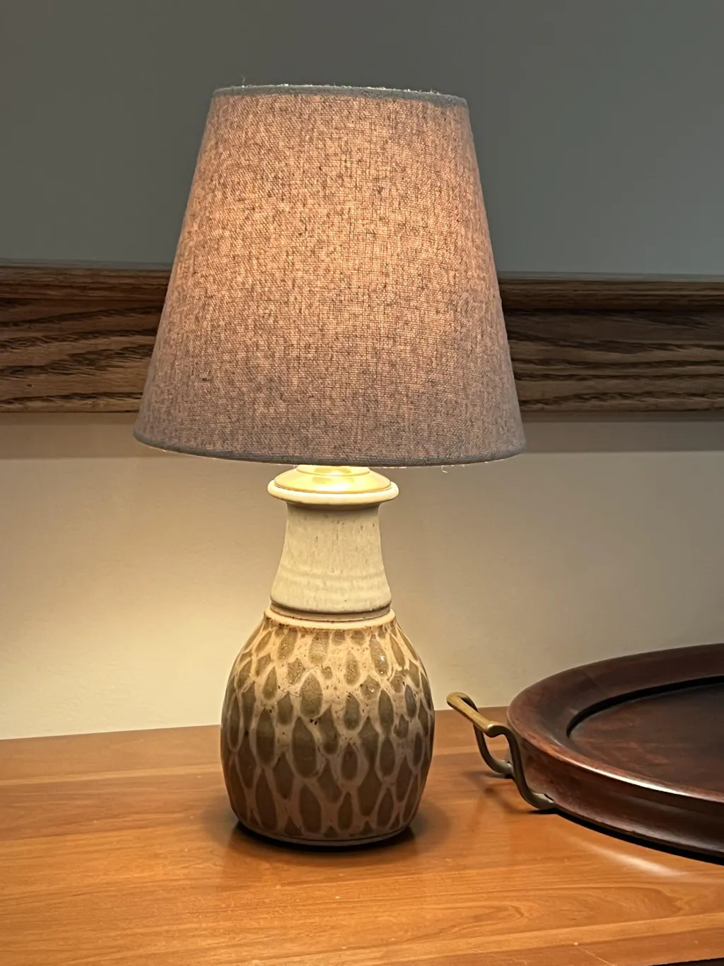 Had a very small hand-thrown pottery lamp that needed a small shade and found the perfect one in the Empire Sand Linen Edison lampshade. Wanted a tapered shade and this one fit the lamp perfectly at 5” diameter at the top, 8” diameter at the bottom and 7” in height.