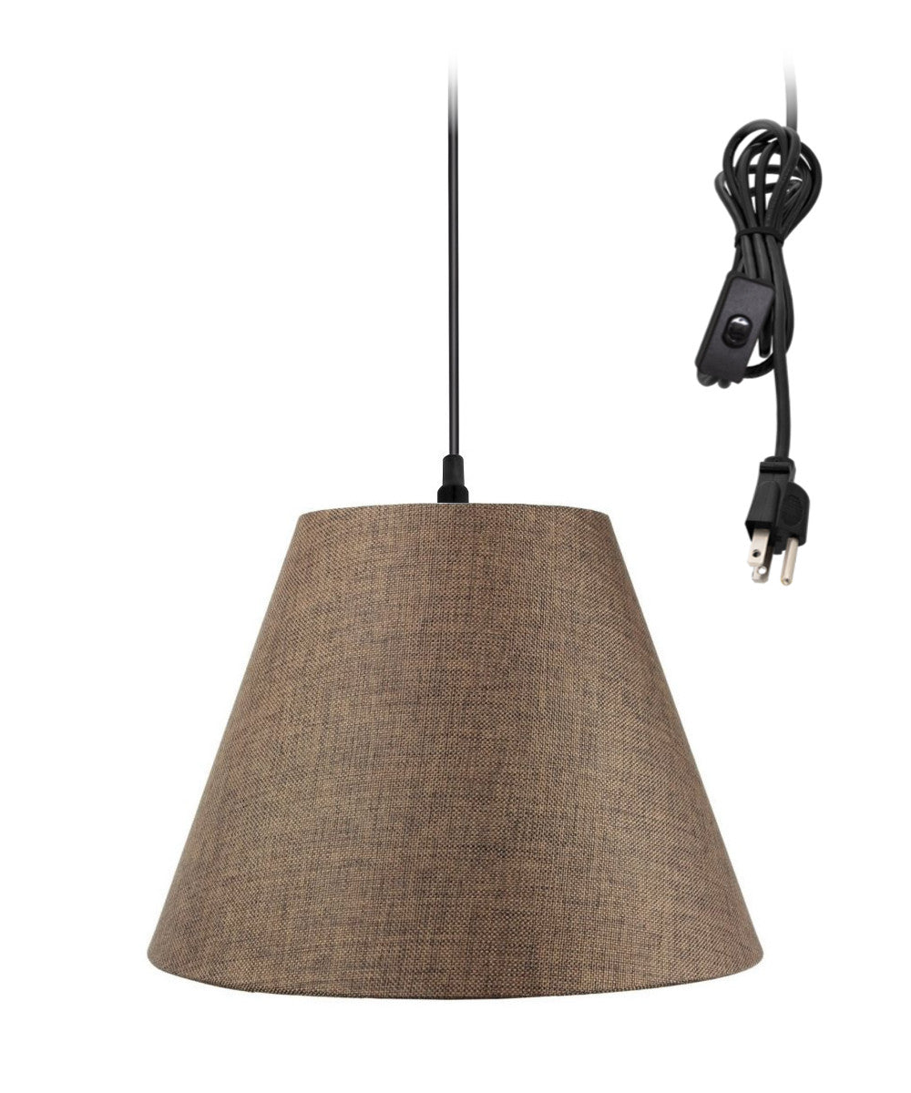 Enhance your home's lighting and decor with the 16" W 1 Light Swag Plug-In Pendant featuring a Chocolate Burlap Shade and Black Cord. Its premium quality, versatile design, and easy installation make it a must-have addition to any room. Don't miss out on the opportunity to transform your space with this stylish and functional pendant light. Order now and experience the perfect blend of form and function in your home lighting.