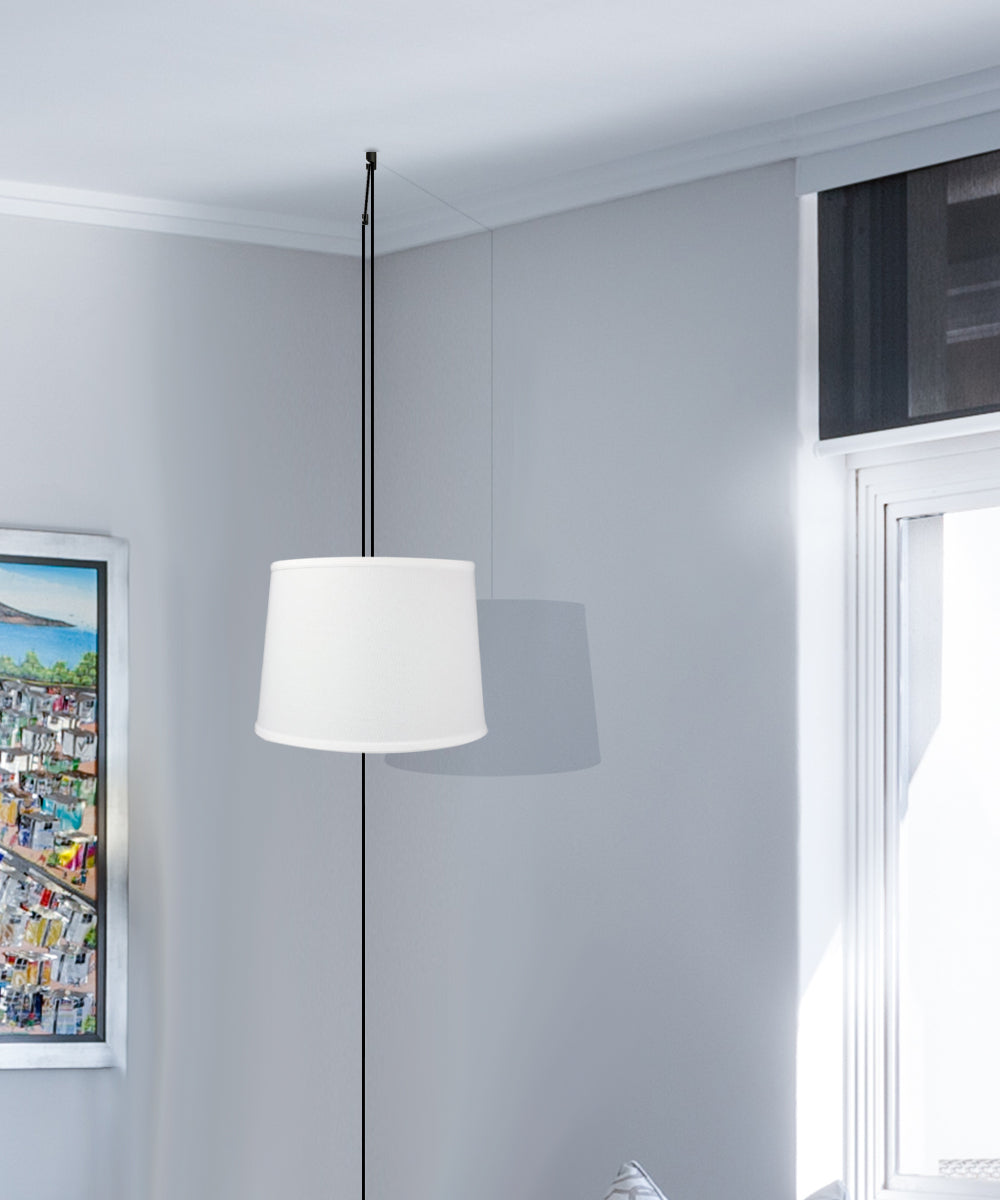 The understated elegance of the white shade combined with the contrasting black cord creates a timeless aesthetic that complements various interior design themes. From modern minimalist to chic industrial, this pendant light seamlessly integrates into your decor, enhancing the overall ambiance of your space. Its neutral color palette ensures it blends well with a wide range of color schemes and furniture styles, making it a versatile addition to your home.