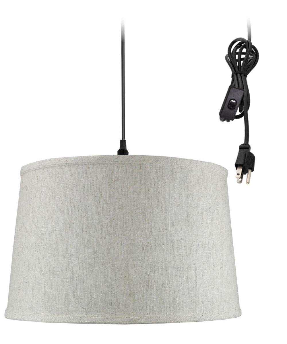 This pendant light is perfect for a wide range of room themes and settings. Its neutral oatmeal shade complements contemporary, modern, and even rustic decor styles. Ideal for living rooms, dining areas, bedrooms, and home offices, it adds a warm and inviting ambiance to any space. The sleek black cord and premium hooks blend seamlessly with various color schemes, enhancing the overall aesthetic of your room.