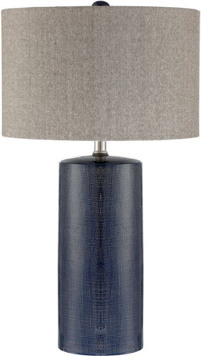 The 29"H Jacoby 1-light Table Lamp in Navy Blue is a stunning addition to any home or office décor. Its sleek cylindrical base, finished in a sophisticated navy blue, exudes modern elegance. The textured finish adds a touch of subtle sophistication, making it a versatile piece that complements a variety of interior styles. The lamp's design is both contemporary and timeless, ensuring it will remain a staple in your décor for years to come.