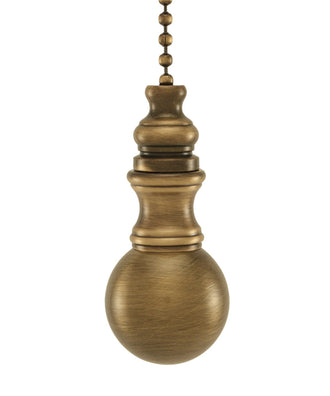 Sphere Round Ceiling Fan Pull, 1.2"h with 12" Antiqued Brass Chain