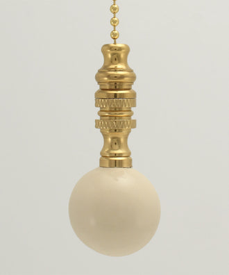 Ceramic Ivory Ball Ceiling Fan Pull, 2"h with 12" Polished Brass Chain