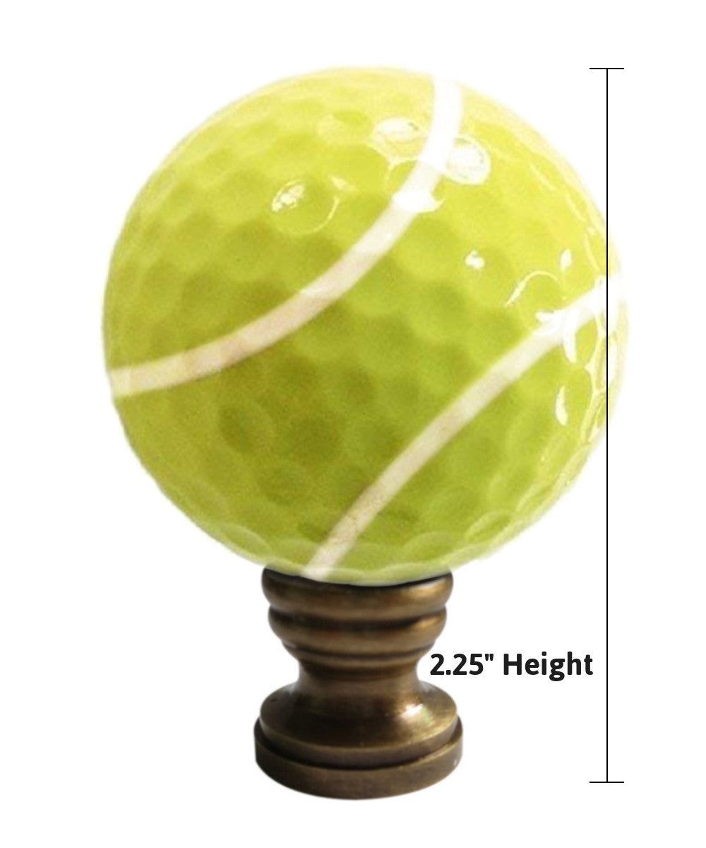 • TENNIS BALL SHAPE - 1.68" width Sphere (42mm wide) lamp finial. Height is 2.25" (57mm) with a 12" chain. A perfect sports novelty to complete your ceiling fan.