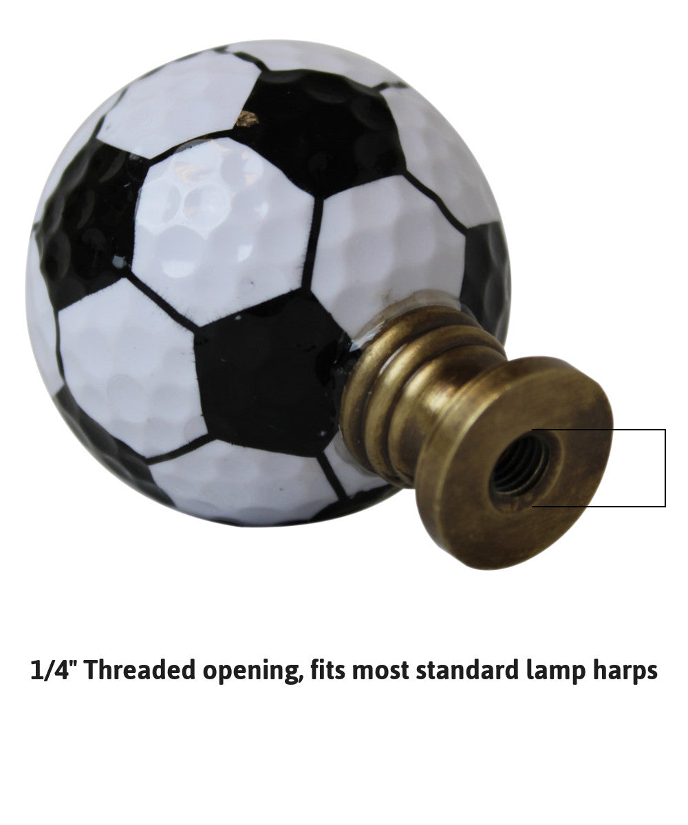 Show your love for the beautiful game with this Soccer Ball Lamp Finial. Crafted with a meticulous eye for detail, this finial features the classic black and white pentagon pattern that is instantly recognizable to any soccer enthusiast. The spherical design, measuring 1.68 inches in width, perfectly mimics the look of a real soccer ball, adding a playful yet sophisticated touch to your lamp.