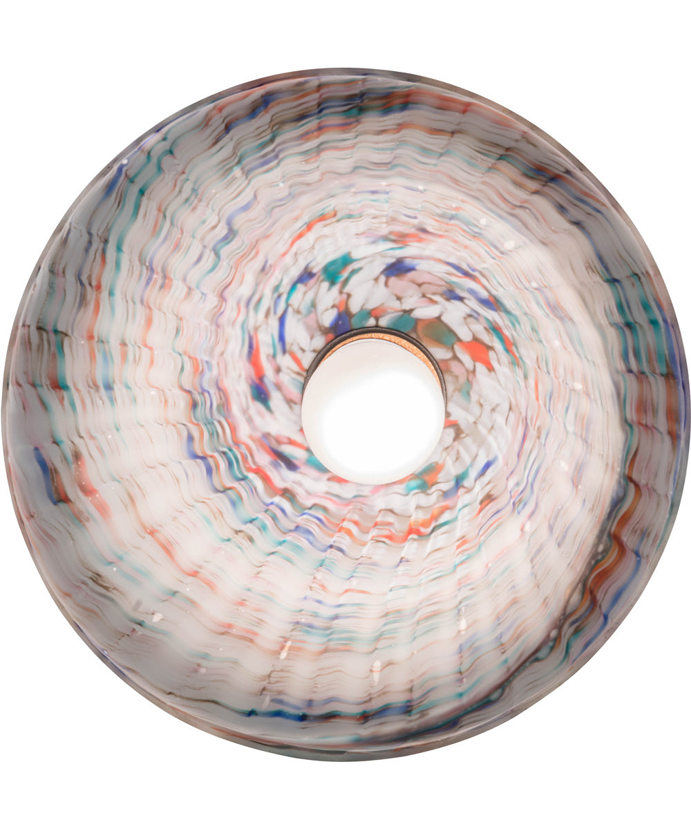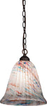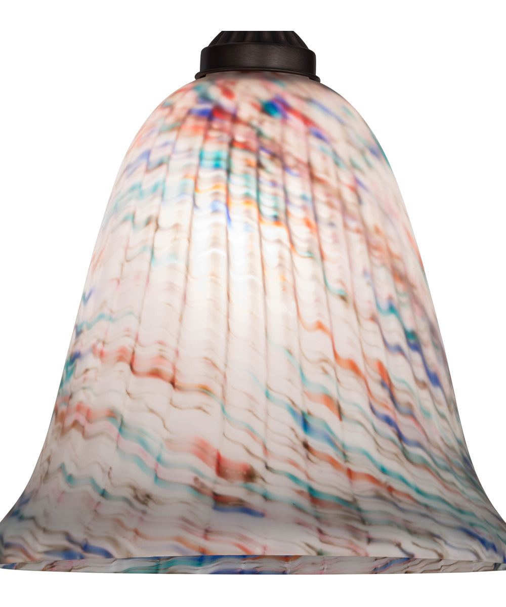 This exquisite pendant light showcases a harmonious blend of colors, including ruby, coral, green, blue, violet, and white. The frosted clear glass background enhances the vibrancy of these hues, creating a captivating interplay of light and color. The Mahogany Bronze finish on the metal base adds a touch of warmth and sophistication, making this pendant light a perfect addition to any decor style.